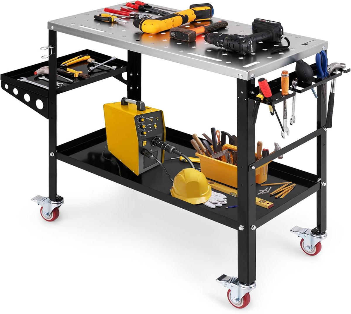 Cavalletto da Lavoro, Set da 2, Banco da Lavoro Resistente, max. 200kg, 80-130cm, Pieghevole, Nero-Argento